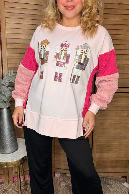 Sequin nutcracker corduroy women sweatshirt XCH16601