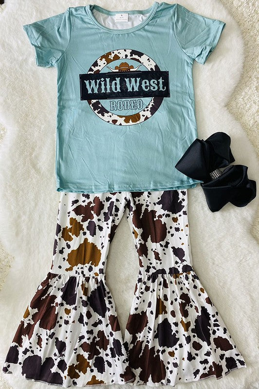 WILD WEST RODEO blut top cow prints bell bottom girls sets 1123WY