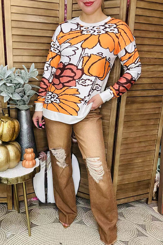 SaleShop Fall Yellow flower printed long sleeve plus size women top XCH16064