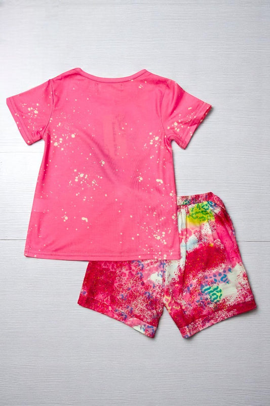 SaleMulti color sunflower pink top tie dye shorts 2pc girls sets X0777-6