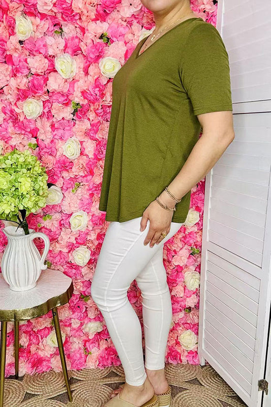 SaleWomen's clothing wholesale online Green V-neckline short sleeves top GJQ15508