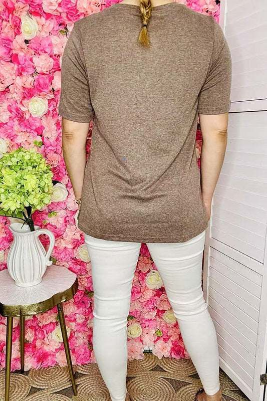 SaleWomen's boutique clothing wholesale solid color light tan short sleeve tops GJQ15568