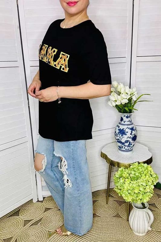 Wholesale women's t-shirt MAMA embroidered black short sleeve top DLH13611