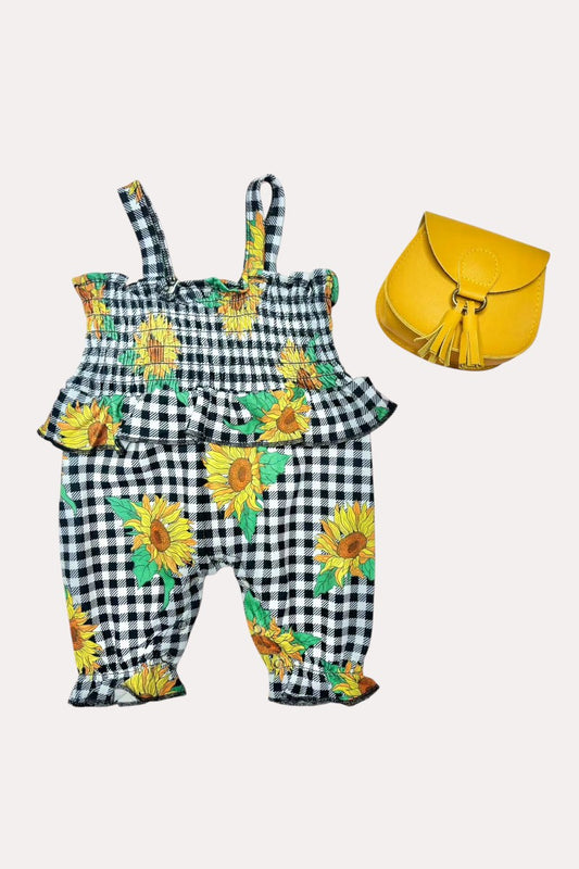 Wholesale baby clothes sunflower & Checkered prints sleeveless rompers X0999-22H
