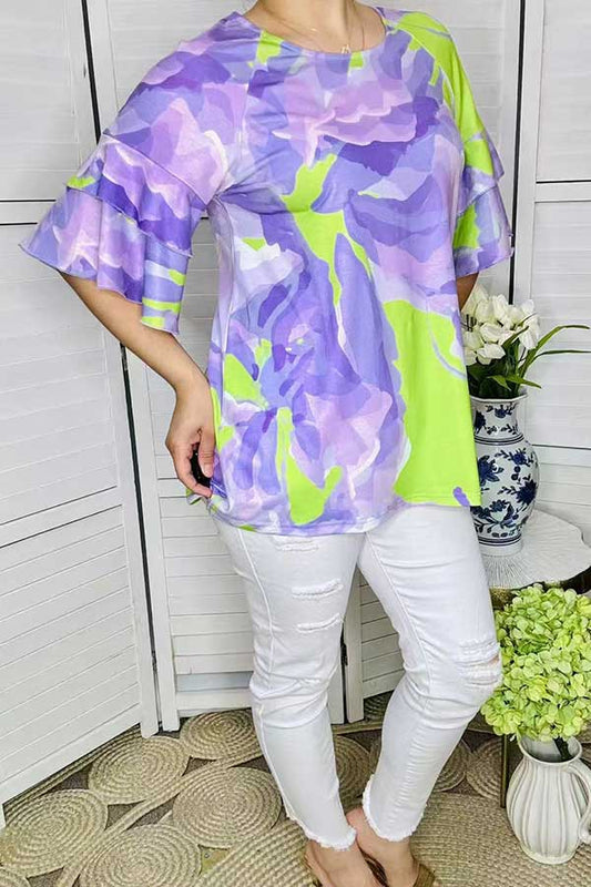 SaleLadies clothing wholeale aztec & purple ruffle short sleeves tops BQ9829