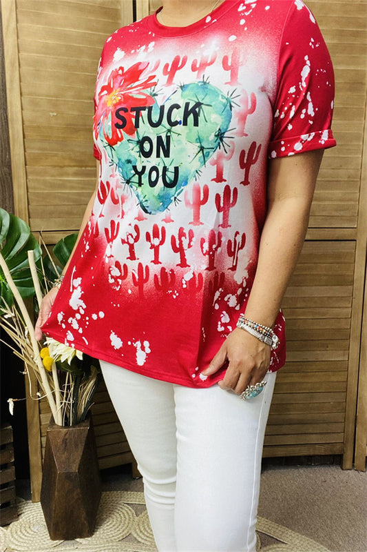 SaleXCH14652 STUCK ON YOU Cactus&Heart red multi color printed short sleeve women tops