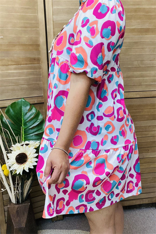 SaleXCH15818 Teal&fuchsia multi color leopard printed short sleeve women loose dress