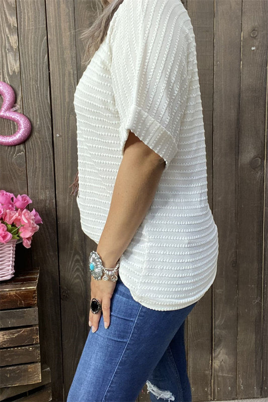SaleGJQ15717 White women tops short sleeve/double trim small dots to line with soft material