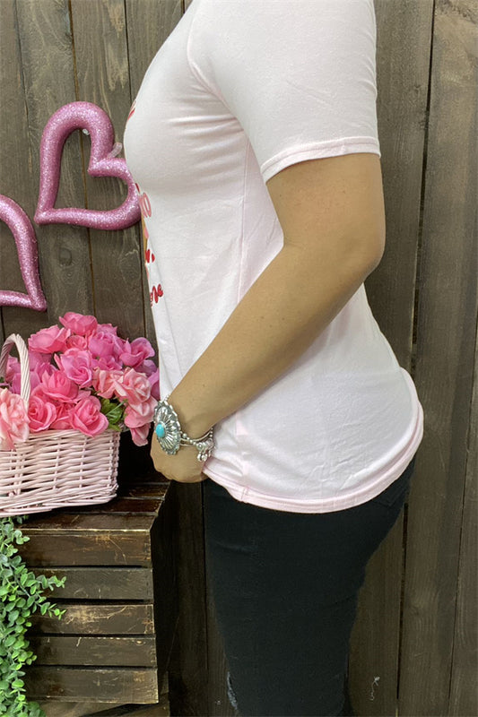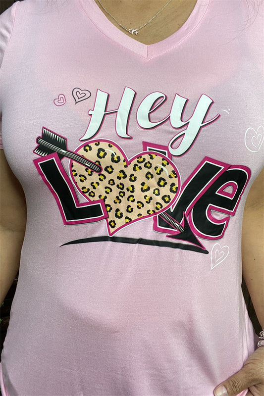 DLH8995 HEY LOVE Pink printed short sleeve t-shirt