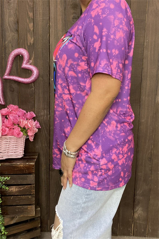 XCH14471 XOXO,purple tie dye women short sleeve tops