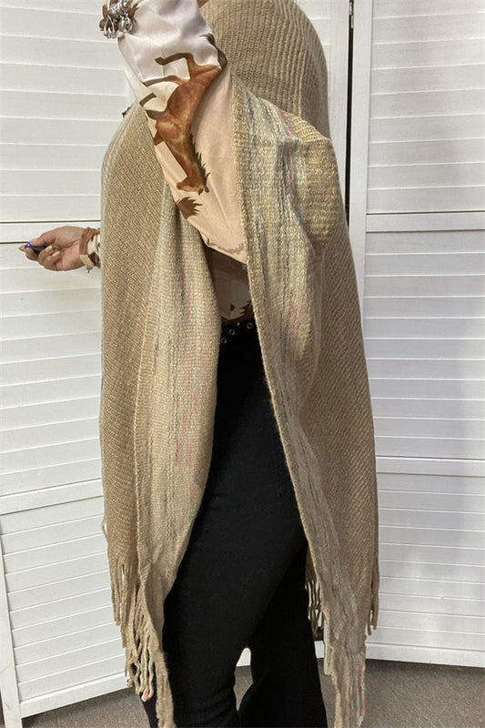 SaleTTY11096 Khaki &multi color shawl w/tassels&fringe for women knitted fabric