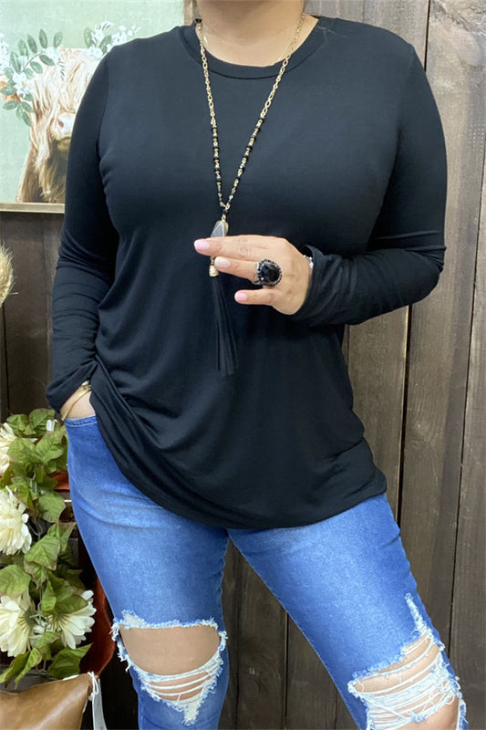 SaleSolid black long sleeve stretchy women t-shirt YMY15530