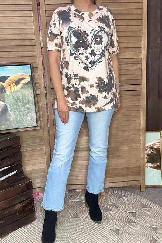 SaleValentine Hearts printed leopard short sleeve tie dye women t-shirt XCH14625