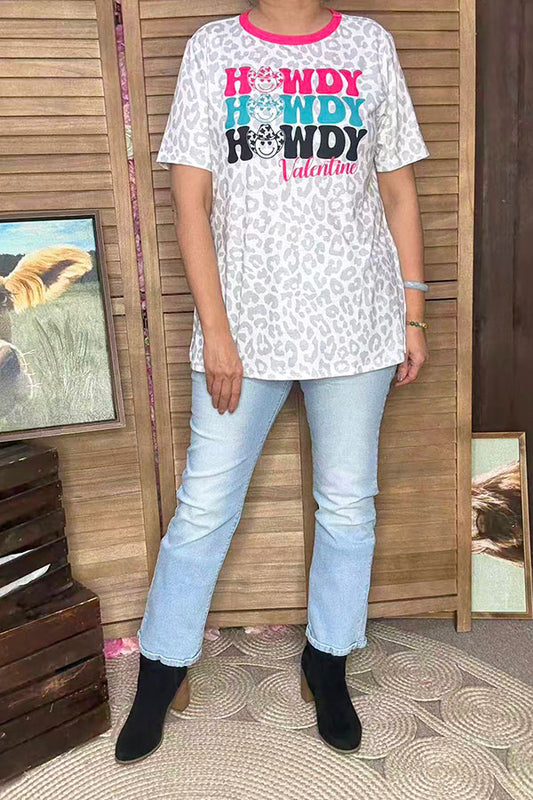 SaleSmile face & HOWDY Valentine leopard printed top w/short sleeve XCH14602