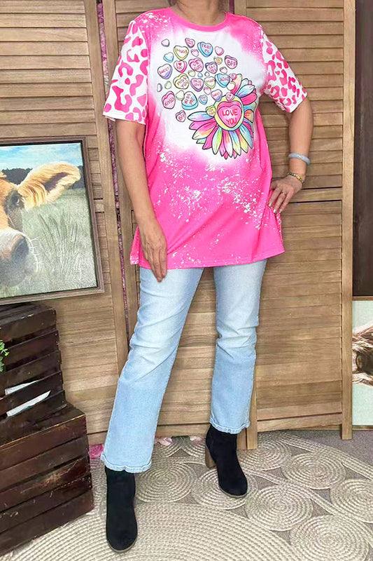 SaleValentine Leopard & heart printed short sleeve women tops DLH13881