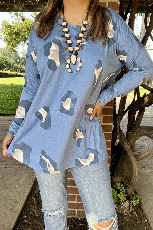 SaleGJQ14724 Blue leopard tighten long sleeve women blouse/tops(CS1)
