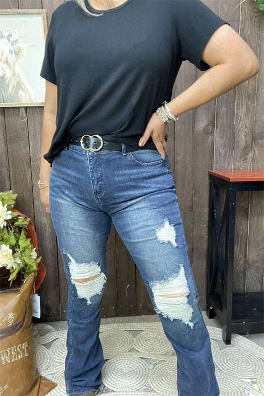 SaleS003 Scratch on the knee blue jean straight women pants