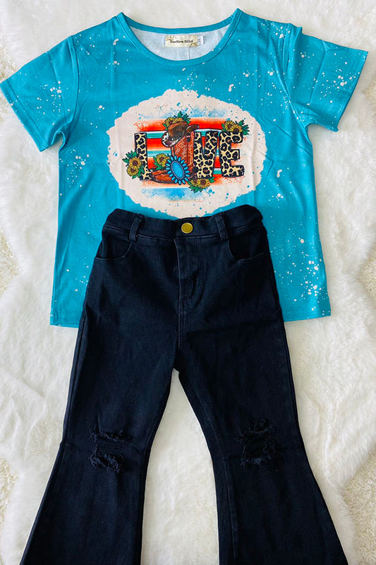 XCH0722-2H LOVE Cowgirl boots printed short sleeve girl t-shirt