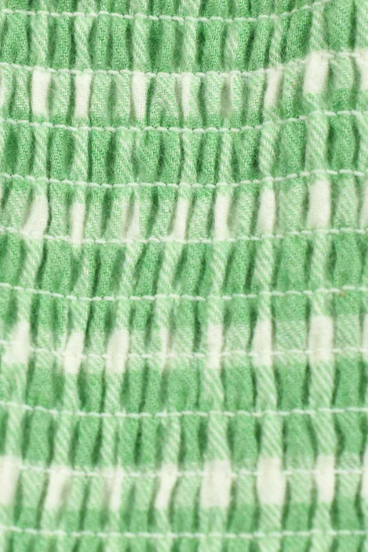 X03015 Green plaid gathered & ruffles short sleeve girls dress