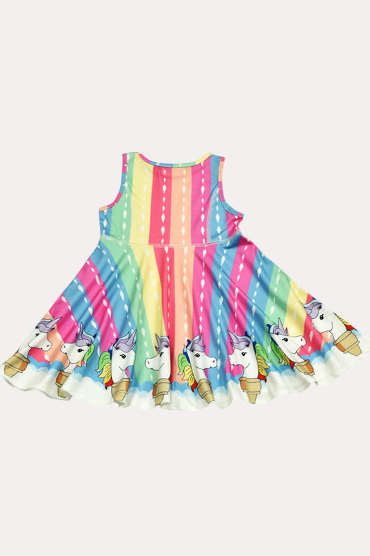 X03012 Multi color serape unicorn printed sleeveless girls swirl dress