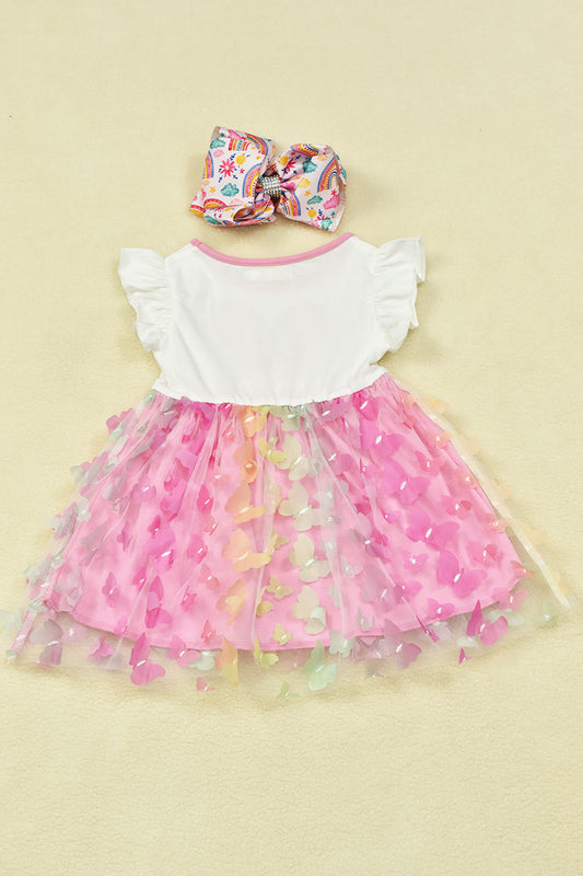 X03010 Butterfly printed & emboridery mesh flutter sleeve girls dress
