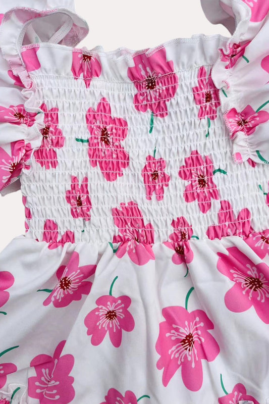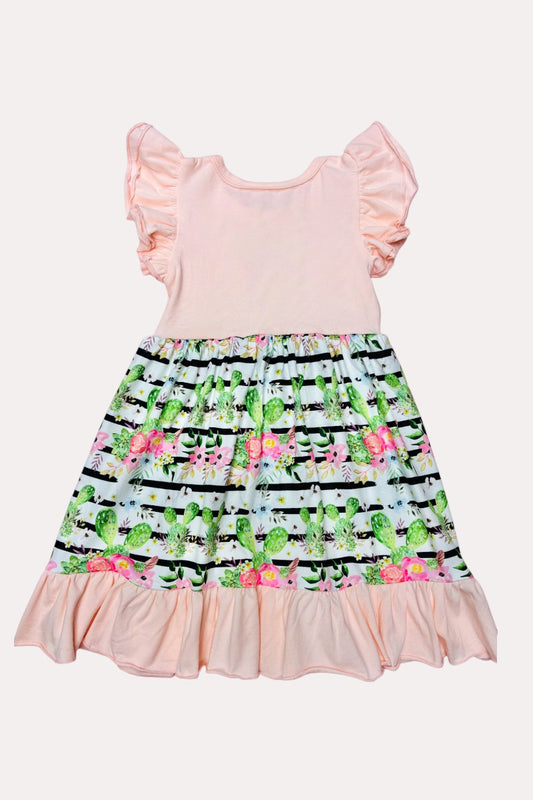 D1215-29 Pink & Cactus floral printed ruffle short sleeve girl dress