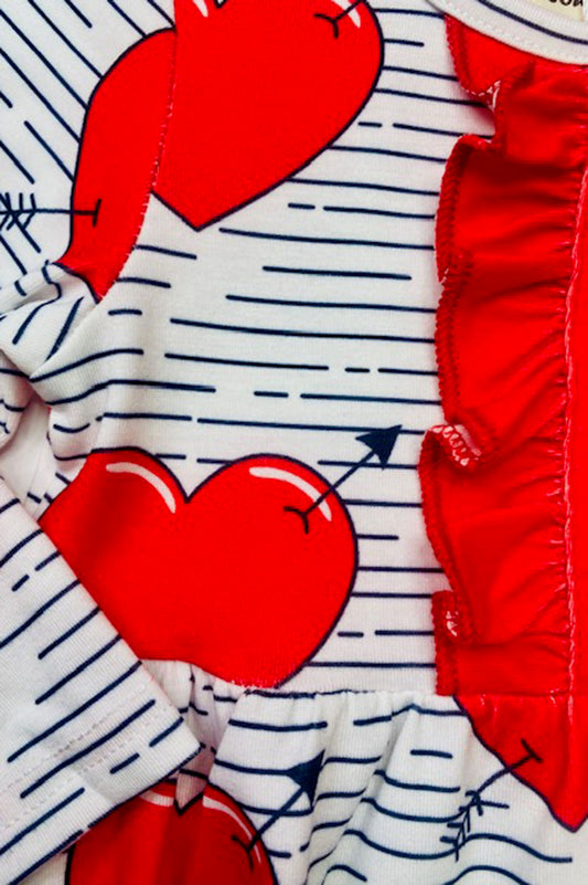 X0017-15 Red hearts & stripe printed long sleeve girls dress w/front ruffle