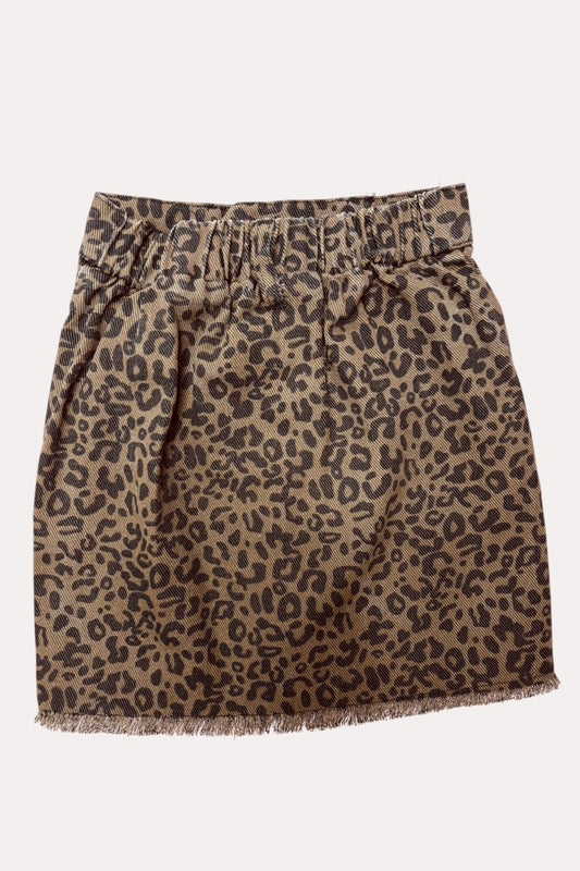 D2553 Brown leopard printed denim girls skirts w/pocket