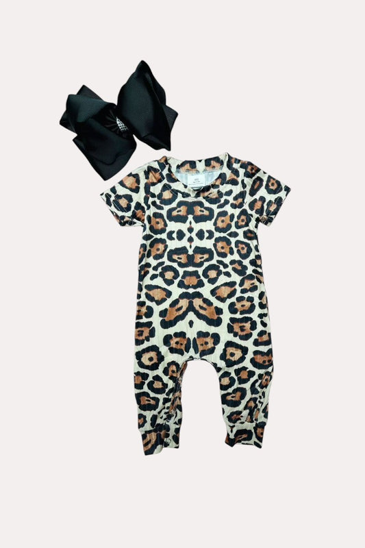 1143WY Cheetah print short sleeve baby romper
