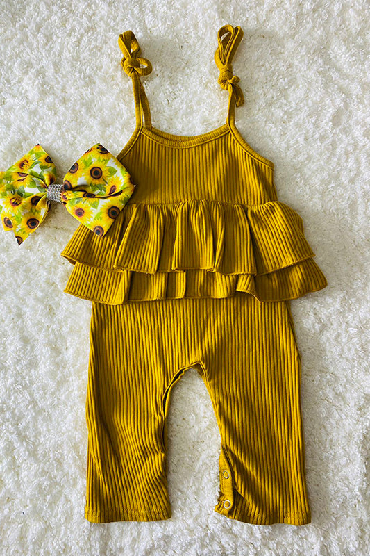 DLH2548 Yellow double ruffle striped girls jumpsuit