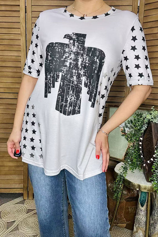 Hearts printed white short sleeve top & polka dots skirt girls set X04016