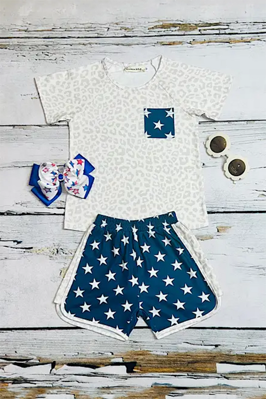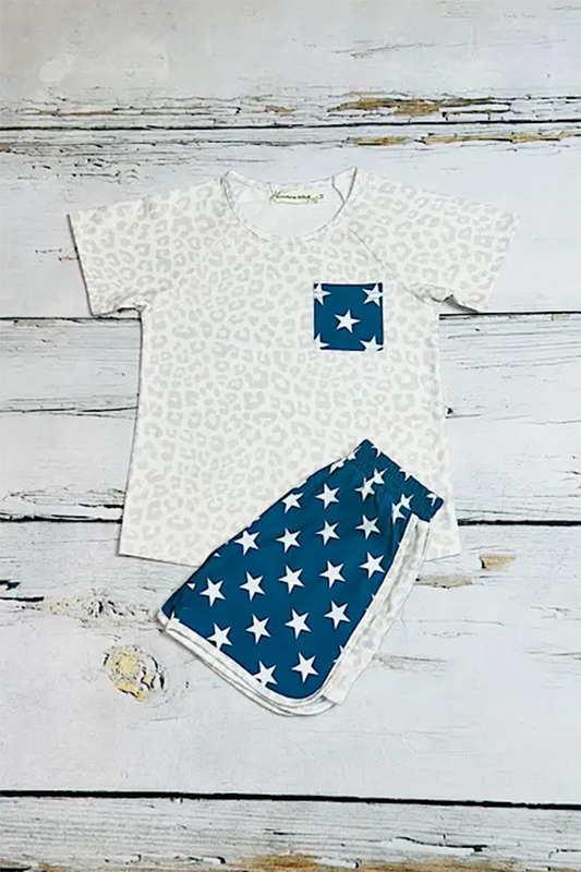 XCH0011-9H Kids hearts & leopard printed short sleeve top