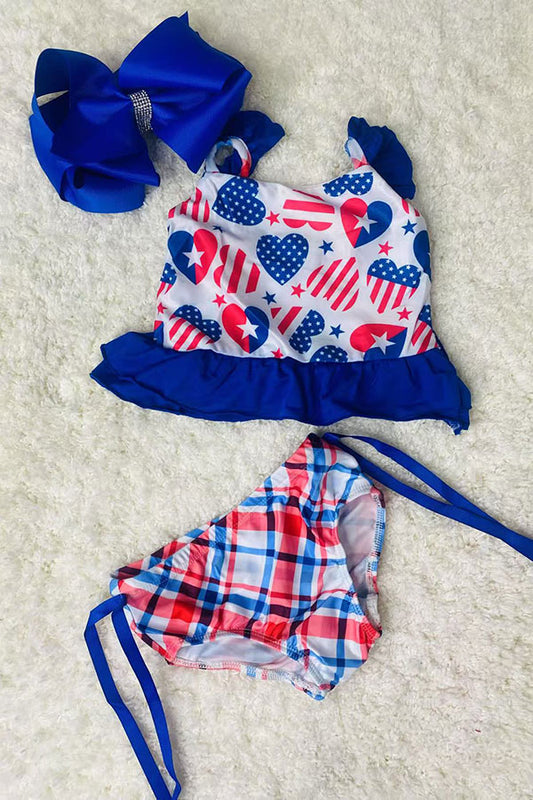 Girls bikini sets Patriotic hearts & plaid print 2pc ruffle swimsuit DLH2366