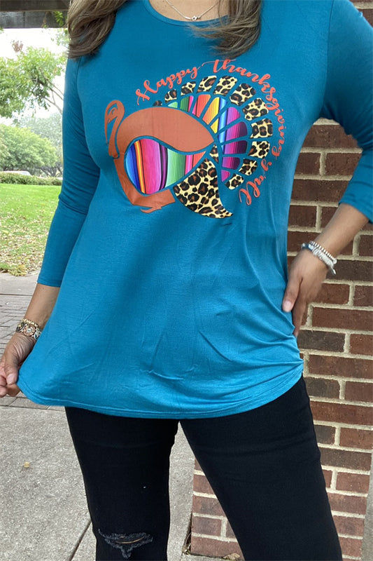 Happy Thanksgiving y'all printed turkey 3/4 sleeve women top DLH8330