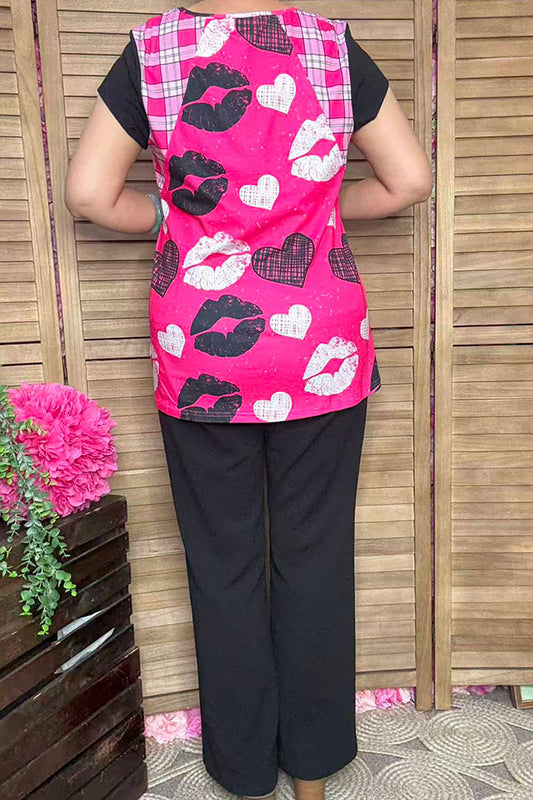SaleHeart & lips printed color block short sleeve women top XCH14675