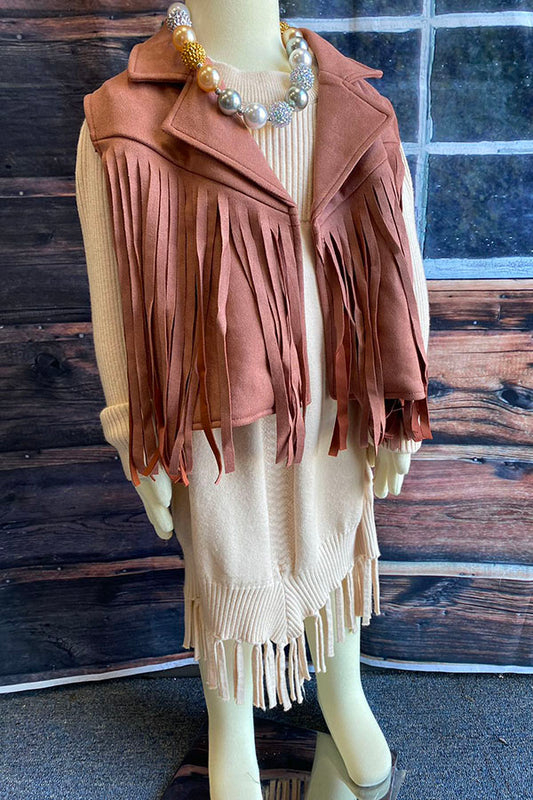 DLH2655 Mauve pink suede girls vest with tassels