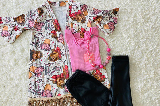 Bulls & cactus girls cardigan w/sequin tassels DLH2545