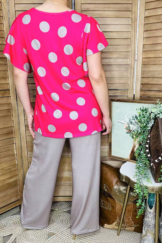 SaleWholesale women clothing Fuchsia dots & grey pant 2pcs sets XCH15751