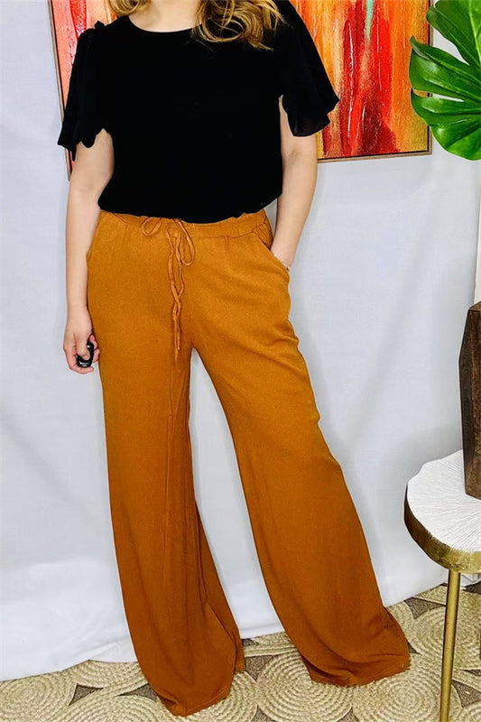 SaleWomen's pant wholesaler Tan color loose straight w/side pockets YMY15523