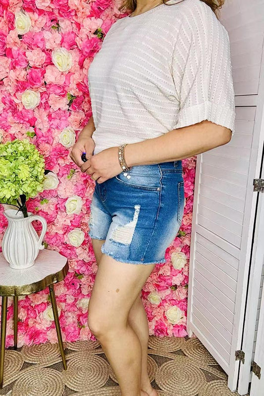 Women's ripped denim shorts wholesale White distressed Shorts J155