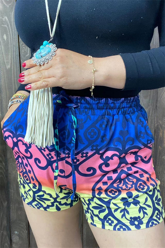 BQ11115 Aztec multi color printed shorts w/pockets