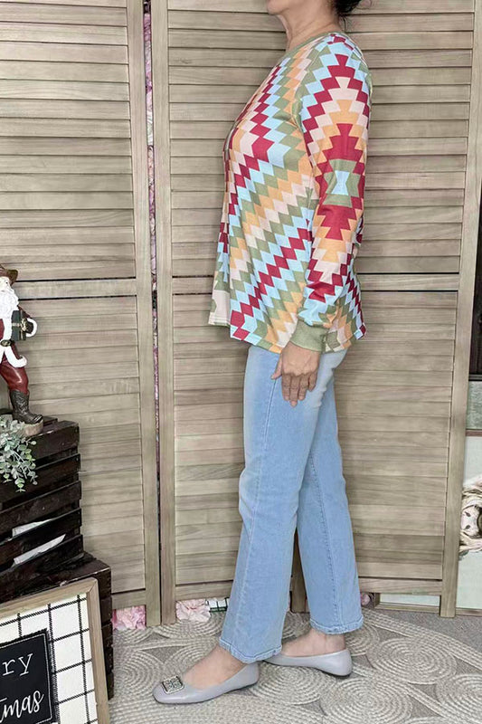 Western printed sheer mesh fabric long sleeve women top XCH16802