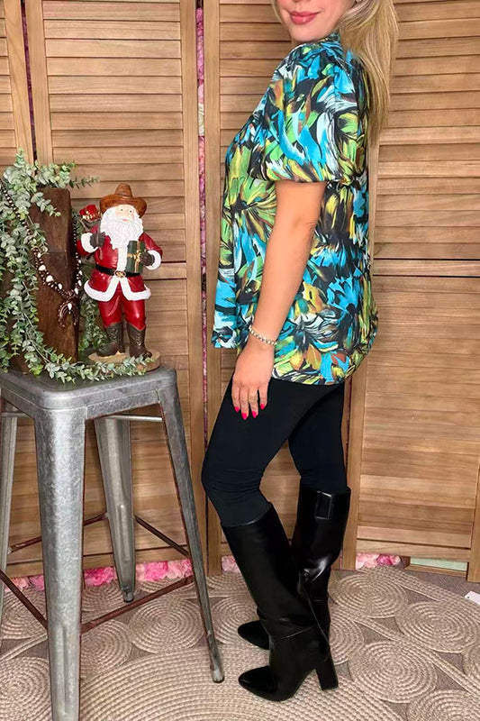 Green & Turquoise printed puff short sleeve women shirts GJQ16615