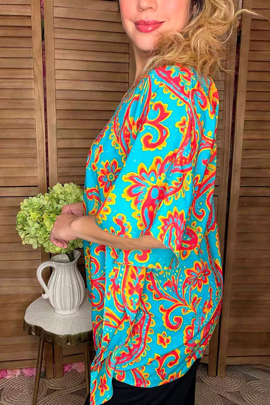 Western paisley printed short sleeve women blouse w/v neckline GJQ16579