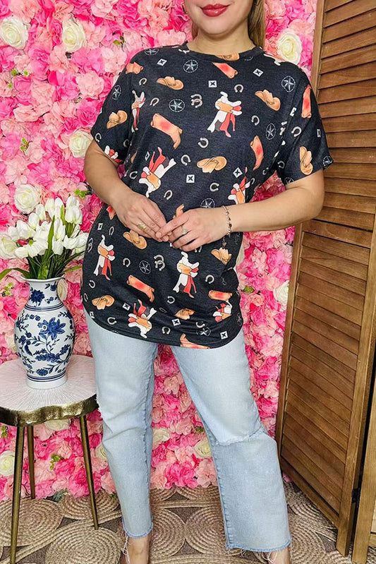 Wholesale t-shirt Boots printed wrinkle side with short sleeves grey women top YMY13805