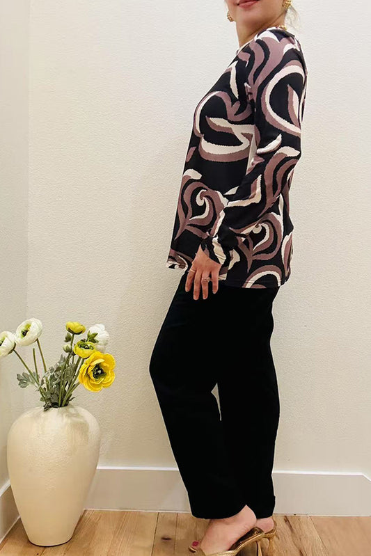 Plus size marble pattern printed long sleeve women blouse GJQ16426