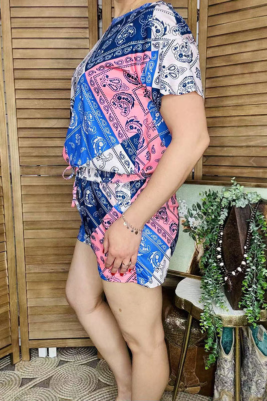 SaleWomen's clothing wholesale Paisley top & shorts w/pockets 2pc sets GJQ15391
