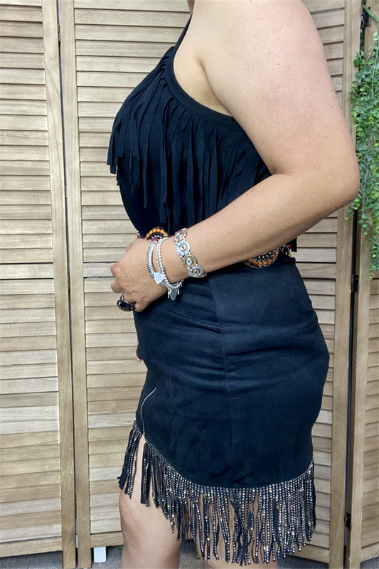 SaleBQ13619 Black solid w/tassel&fringe with adjustable band women tank tops