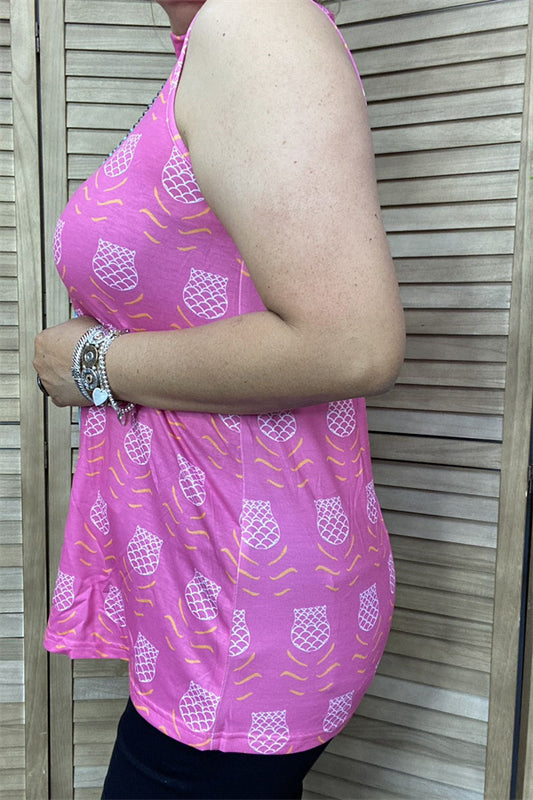 GJQ11063 Graphic pattern printed tank top w/turtle neck