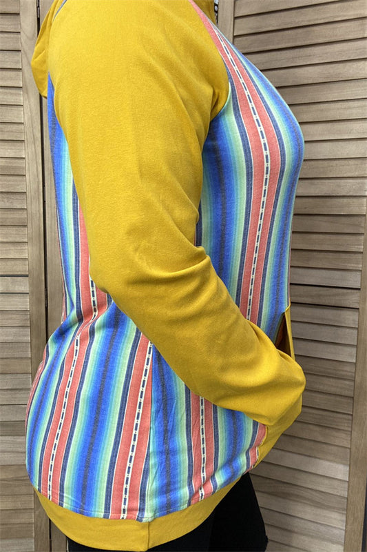 BQ8088 Yellow mustard/serape hoodie w front pocket